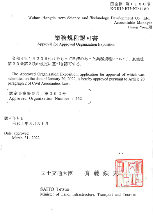 2001年10月 公司獲中國民航總局授權的民航維修許可證。